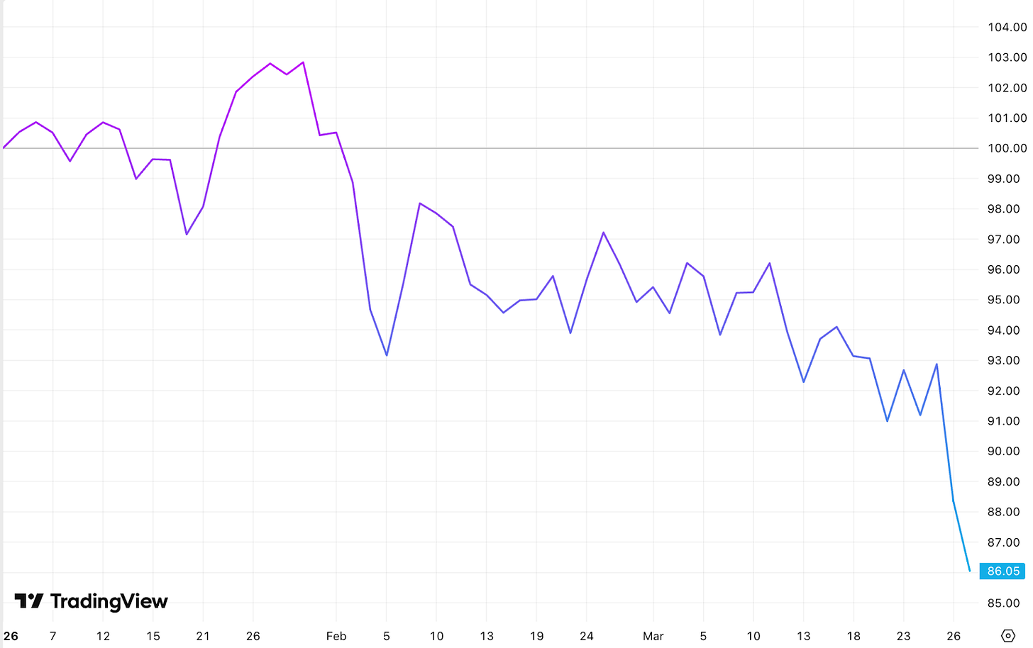 المؤشر سجل تراجعًا بنسبة -14% منذ بداية العام .