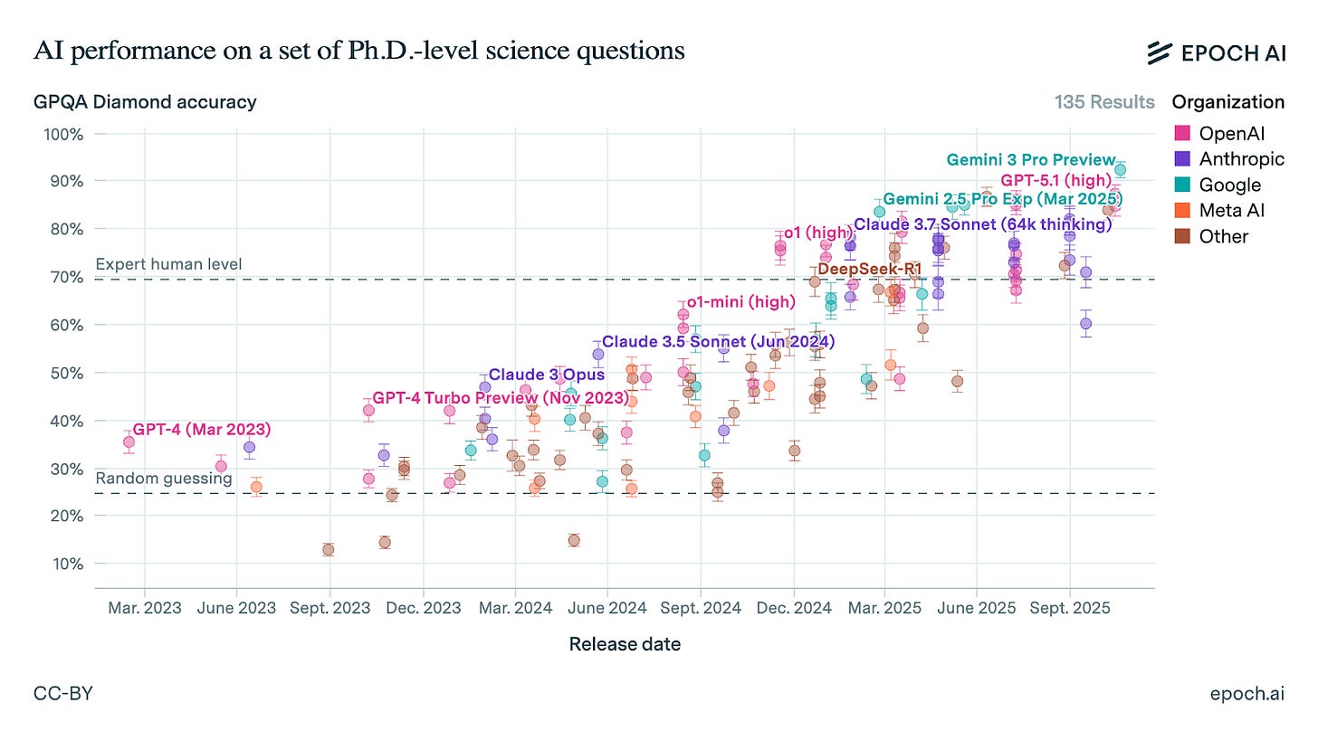 افضل نماذج الذكاء الاصطناعي بحسب اختبار GPQA